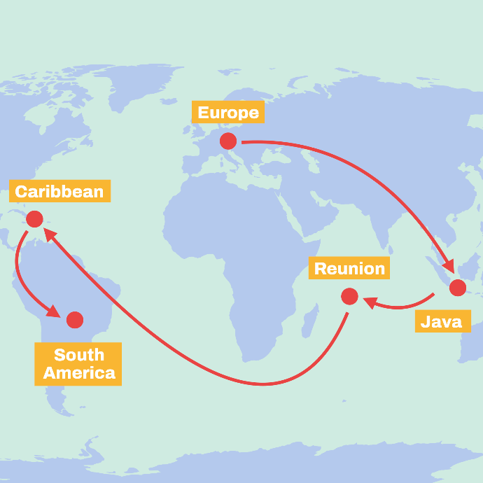 As colonialism spread around the globe, the European colonisers brought the coffee plants along.