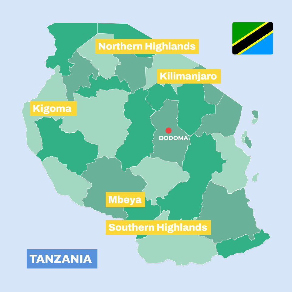 Today, Tanzania produces around 70% Arabica and 30% Robusta, but still struggle to reach the quantities of its neighbouring countries.